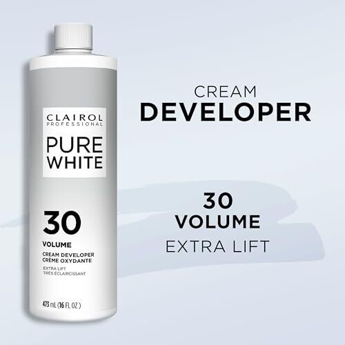 • Professional-grade Clairol Pure White 30 Volume Creme Developer in a convenient 16 oz bottle for unisex use.