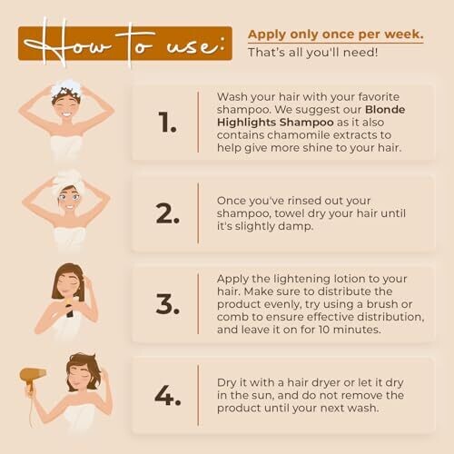 - Lightens brown hair up to 3 tones while reviving natural blonde tones for a brighter, sun-kissed look.