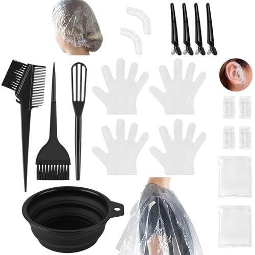 20-pcs Hair Dye Kit with Brush, Bowl, Clips, Earmuffs, Gloves, Shower Cap