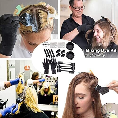 • 20-Piece Hair Dye Kit By Kapaski with Brush and Bowl Set for DIY Coloring Gloves