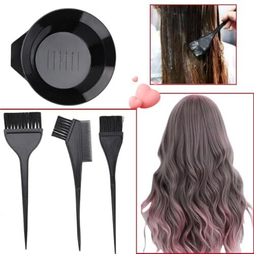 4pcs Hair Dye Brush and Bowl Set, Dye Mixing Kit for Salons and Homes