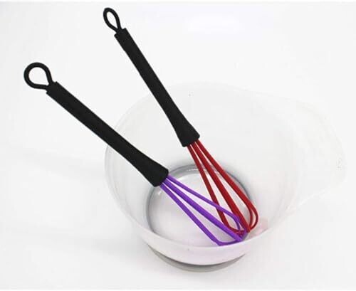• Elevate salon color work with a bundle of six vibrant mini whisks designed for fast, lump-free dye mixing.
