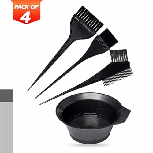 one set containing four hair dye bowls and brushes (bowl & brush kit); portable and easy to store or carry.