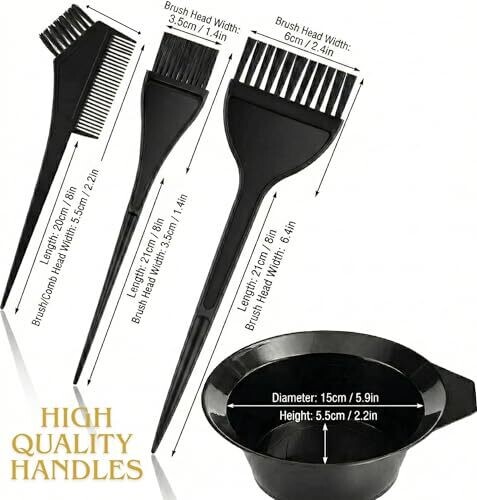 • Includes a mixing bowl, 1 large brush, 1 small brush, and a hair dye comb‑brush for versatile application.