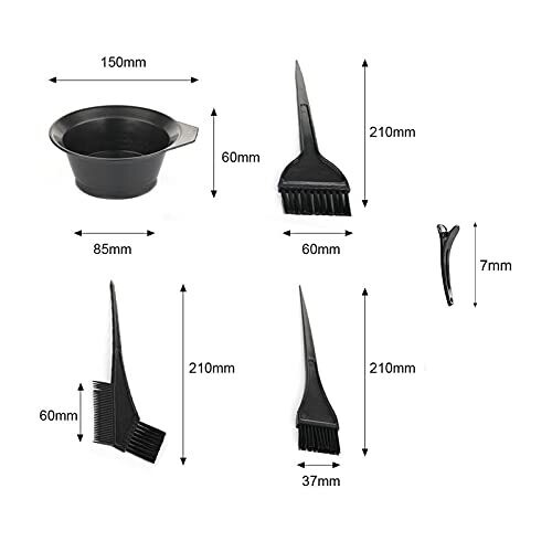 All-in-one hair dye kit for professional-looking at-home color. Includes 22 pieces to cover dyeing, mixing, and application tasks. Durable, lightweight plastic tools easy to clean and reuse. Ergonomic brushes for precise color application, stylish black design.