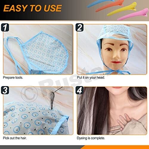 • Rustark 22pcs Hair Coloring Kit: Caps, Styling Tools, Dye Shawl, Gloves, Brush, Bowl, Clips for Home DIY
