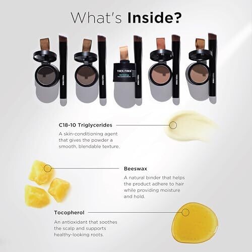 Instantly conceals thinning hairlines and gray roots for a fuller look. Includes puff, mirror, and precision brush for easy application. Water- and sweat-resistant formula that stays put during daily activities. Provides natural-looking coverage for hair loss, bald spots, and part lines.