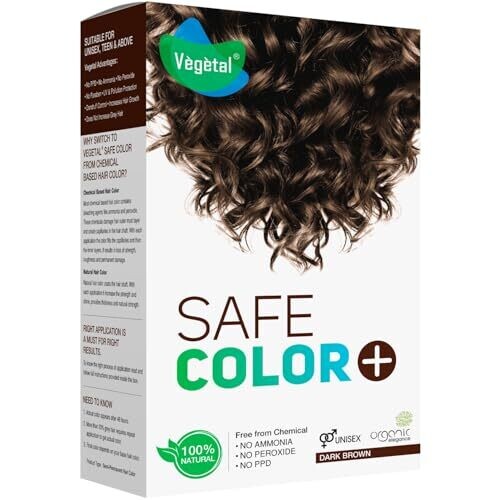 Vegetal Safe Hair Colour Dark Brown, 50 Gm | Semi-Permanent Dye for Men & Women | Ammonia-Free, PPD-Free, Herbal, Organic