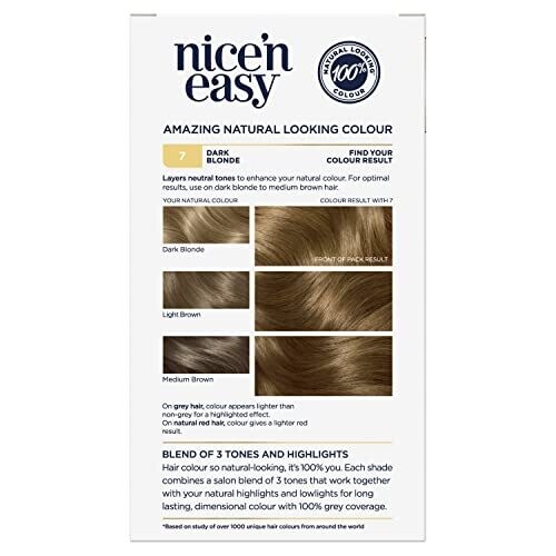 • Clairol Nice 'N Easy Hair Colour 7 Natural Dark Blonde, 100% Grey Coverage