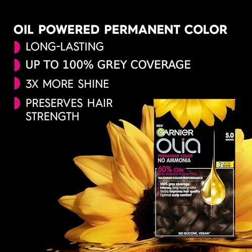 • Elevate your look with Garnier Olia: ammonia-free, nourishing color that shines.