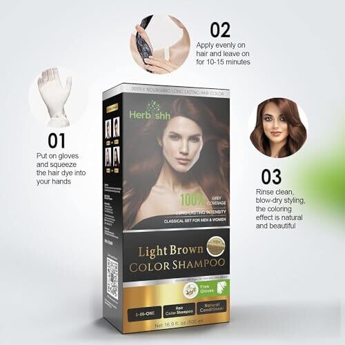 • Experience younger-looking, vibrant color with every wash—Herbishh Light Brown Hair Dye Shampoo is designed to reduce gray appearance while nourishing strands.