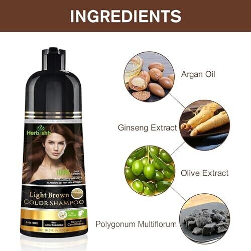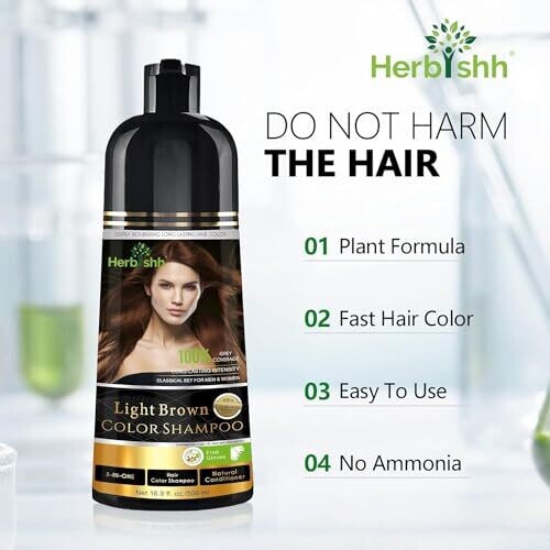 • Herbishh Light Brown Hair Dye Shampoo 500ml 3-In-1 Ammonia-Free Color Grey Hair
