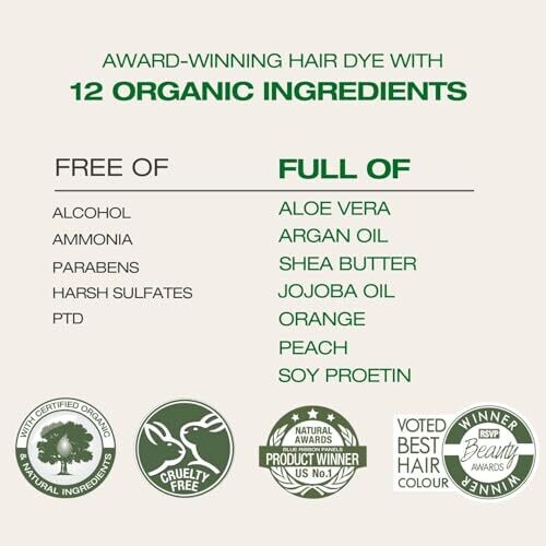 Naturigin Permanent Hair Colour offers a rich natural brown shade with an organic formula. Free from ammonia, parabens and SLS, it provides 100% grey coverage with a gentle, moisturizing blend of 12 natural oils, jojoba among them. Vegan and cruelty-free.