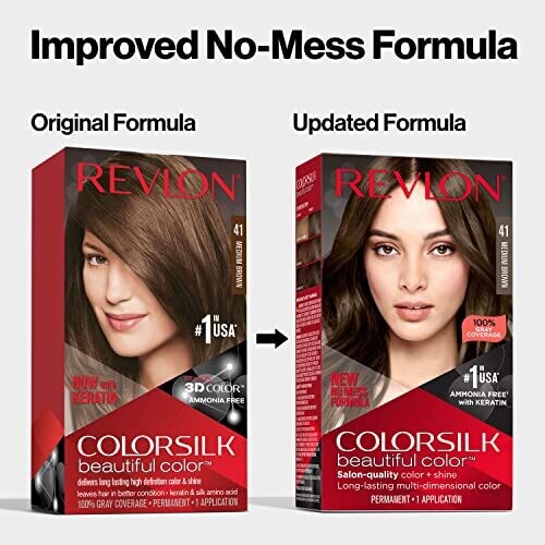 • Introducing Revlon ColorSilk Permanent Hair Colour in Medium Reddish Brown for rich, salon-quality color at home.