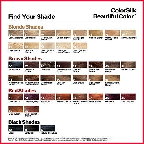 Revlon ColorSilk Permanent Hair Colour, Medium Reddish Brown. 100 percent grey coverage. Ammonia-free. 3D colour gel technology. Delivers natural-looking, long-lasting colour and shine. Provides definition and dimensionality from root to tip.