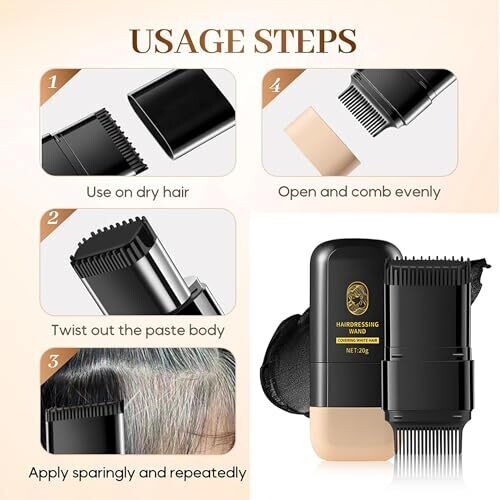 • 2-in-1 hair color stick with a built-in comb for fast, even application