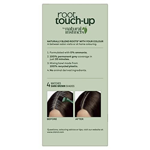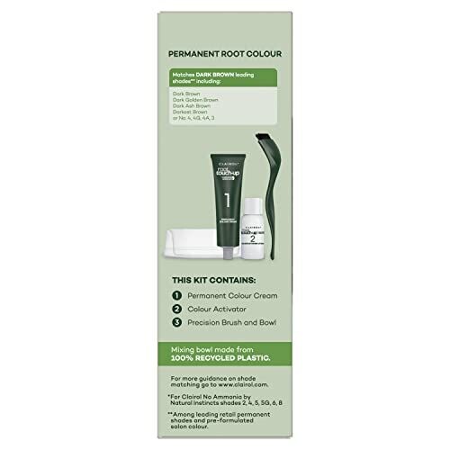 Naturally blend roots in between salon visits or at home. 100 percent permanent grey coverage in just 20 minutes. Formulated with 0 percent ammonia. No animal derived ingredients. Permanent Root Colour. Net weight: