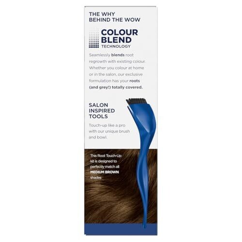 • Permanent root colour designed to blend seamlessly with existing hair shade.