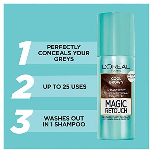 • L’oréal Paris Magic Retouch Instant Root Concealer Spray, Shade: Cool Brown, Quick Grey Coverage for Roots
