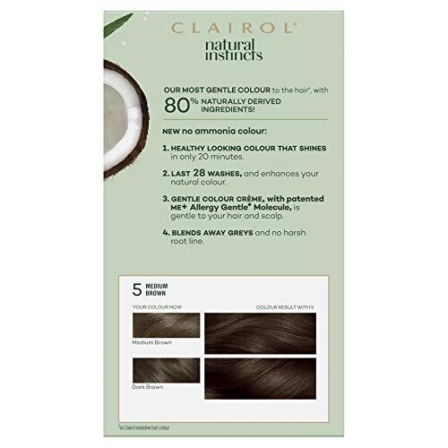 Clairol Natural Instincts Semi-Permanant Hair Colour, 5 Medium Brown, Ammonia Free, Natural Hair Colour