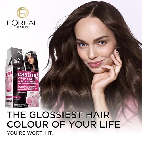 Discover intense, glossy color with L'oréal Casting Crème Gloss in Ebony Black. Ammonia-free formula for gentle colouring, long-lasting semi-permanent finish, Glycolic Gloss Complex for an ultra-glossy look, covers grey evenly, up to 32 washes.