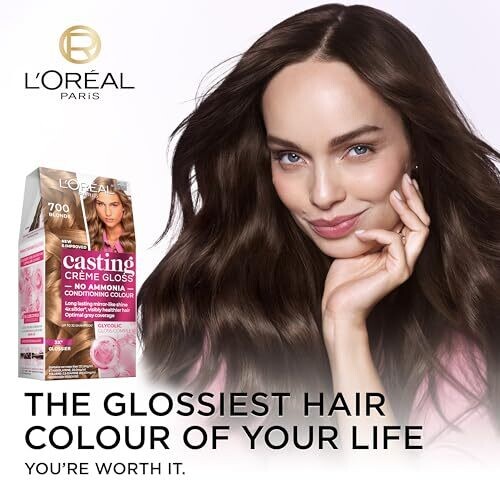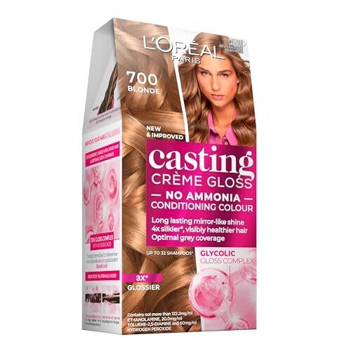 L'Oréal Paris Casting Crème Gloss Semi-Permanent Hair Colour - 700 Blonde (Ammonia Free); Ammonia-free formula; Glycolic Gloss Complex for glossy finish and conditioning; Color lasts up to 32 washes; Grey coverage that is strong and even; Fragrance is due to absence of ammonia.