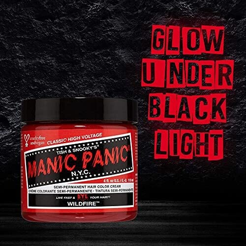 Manic Panic Wildfire Red Hair Dye – Classic High Voltage – Semi Permanent Color – Reddish Orange Shade – Glows Under Blacklight – Vegan, PPD & Ammonia Free