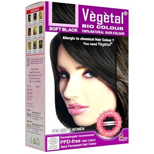 Vegetal Bio Hair Colour -Soft Black 50Gm | Semi-Permanent Dye for Men & Women
