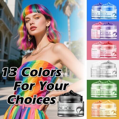 Experience bold black color with a safe, chemical-free at-home formula. This temporary, washable wax rinses out easily, leaving no sticky residue. Suitable for all hair types and genders, ideal for cosplay, parties, Halloween, and quick daily color changes.