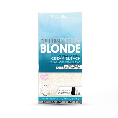 • Knight & Wilson Color-Freedom Cream Hair Bleach Kit. Ammonia-Free Lifts Up to 8 Shades; Complete with Tint Bowl Brush Gloves Cap