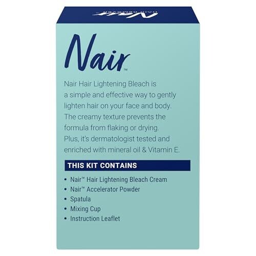 35 g. Gently lightens hair to blend with lighter skin tones without removing hair. Fast-acting formula provides results in about 7 minutes. Dermatologist-approved for safe use on the face and body. Formulated with mineral oil and vitamin E to aid smooth application and comfort. An at-home hair bleaching solution designed as a convenient alternative to salon treatments.