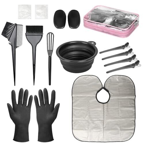 • 16-Piece Hair Dye Coloring Kit - Hair Tinting Bowl, Hair Agitator, Dye Brush, Ear Cover, Hairpin, Hair Coloring Cape for Color Dye Tools