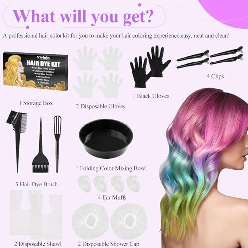 - Every kit comes with practical items like clips, ear muffs, gloves, a scarf, and a shower cap to protect and streamline the coloring routine.