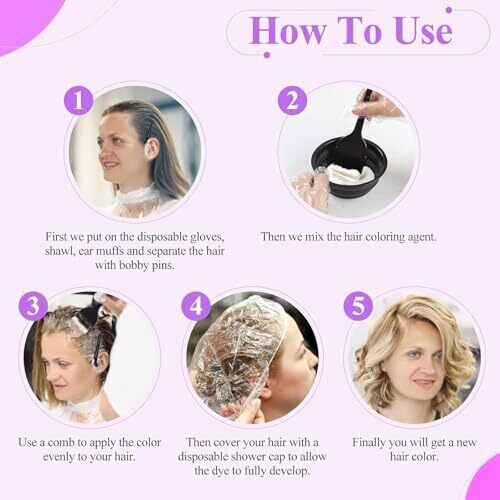 - Includes 3 hair dye brushes, 1 folding color mixing bowl, 4 clips, 4 ear muffs, 2 pairs of gloves, 2 shawls, and 2 shower caps.
