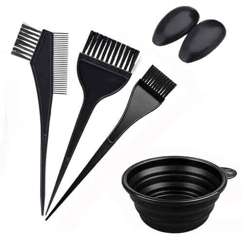 • Complete 5-piece hair dye tool set designed for home or salon use, delivering professional results with ease.