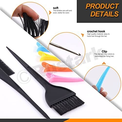 • Rustark 22pcs Hair Coloring Kit: Caps, Styling Tools, Dye Shawl, Gloves, Brush, Bowl, Clips for Home DIY