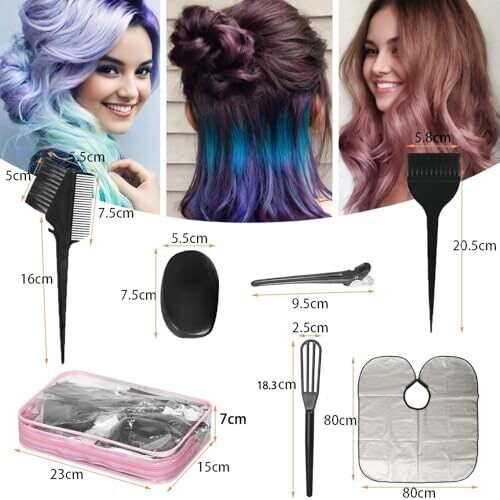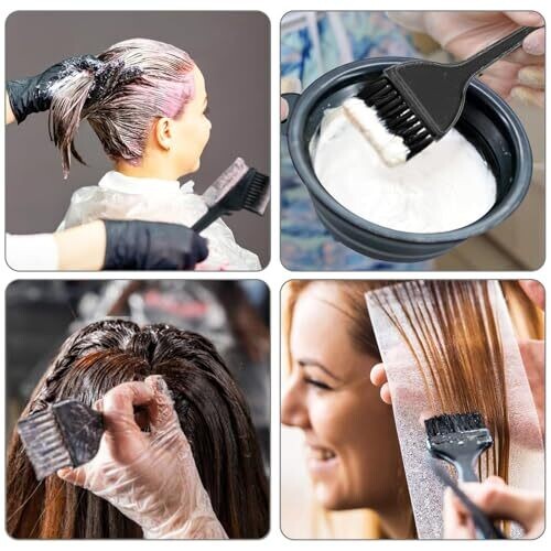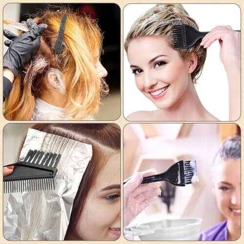 Complete Hair Dye Kit includes tinting bowl, hair dye brush, shawl, gloves, and all essentials for professional-grade coloring at home or in the salon. Reusable and easy to clean; after use wash and dry, then store in the included transparent packaging bag for long-lasting durability. Professional-quality results with brushes suitable for various hairstyles (short, long, curly, or straight). Comfortable and durable materials include hair dye shawls, rubber gloves, and silicone earmuffs for a mess-free coloring experience. Transparent storage bags securely hold all tools for convenient storage and travel.