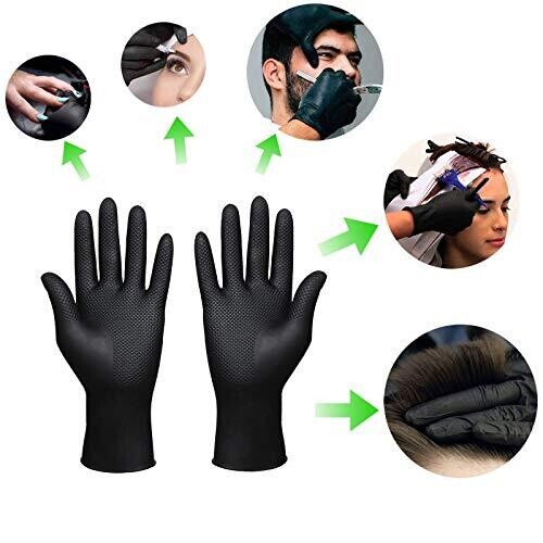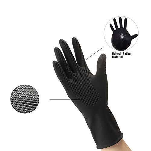 Sunhhx Hair Dye Gloves, Reusable Rubber Gloves for Salon (1 Pr, Large, Black)