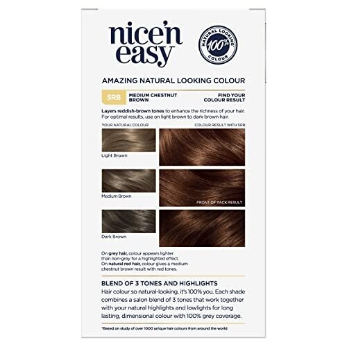 Clairol Nice 'N Easy Colour 5Rb Natural Chestnut Brown, 100% Grey Coverage