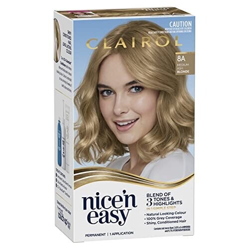 Clairol Nice 'N Easy Permanent Hair Colour 8A Ash Blonde, 100% Grey Coverage