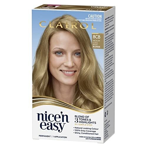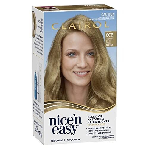 Discover a natural-looking, vibrant shade with Clairol Nice 'N Easy 8CB Medium Champagne Blonde. Achieve 100% grey coverage for a seamless, youthful finish. Rich multidimensional tones provide long-lasting color that stays true in bright sun, with an easy-at-home formula.