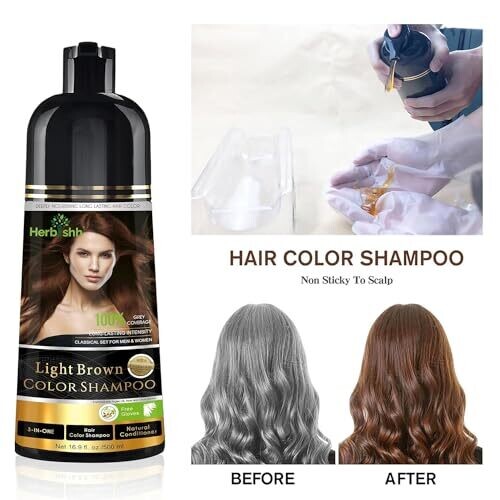 • Herbishh Light Brown Hair Dye Shampoo 500ml 3-In-1 Ammonia-Free Color Grey Hair