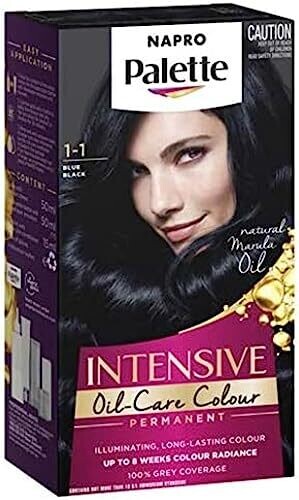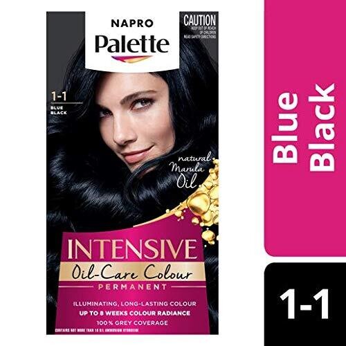 • Napro Palette, Permanent Hair Colour in 1-1 Blue Black delivers a salon-ready blue-black shade with a glossy, even finish.