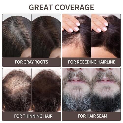 - Instantly conceals hair loss and gray roots with a natural blend that matches diverse hair shades.