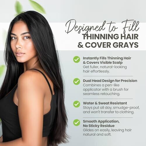 - Dual-head design with a pen-like body and brush tip for precise application at hairlines and roots.