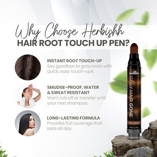 - Introducing Herbishh Hair Root Touch-up Pen for instant gray coverage, root touch-ups, and thinning hair fill for a natural look.