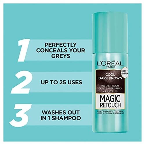 • L’oréal Paris Magic Retouch Root Concealer Spray, Shade: Cool Dark Brown, Grey Coverage, 75ml