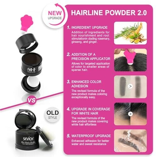 Sevich Hairline Powder 2.0 Conceals Hair Loss Windproof 48H Lasting, Dark Brown