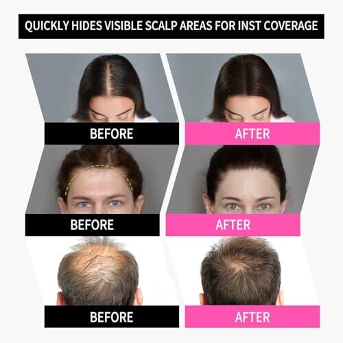 - Instantly conceals sparse areas and hair loss for a natural, fuller-looking hairline.