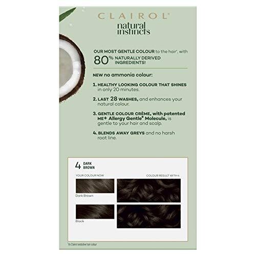 • Clairol Natural Instincts Semi-Permanant Hair Colour, Ammonia Free, 4 Dark Brown